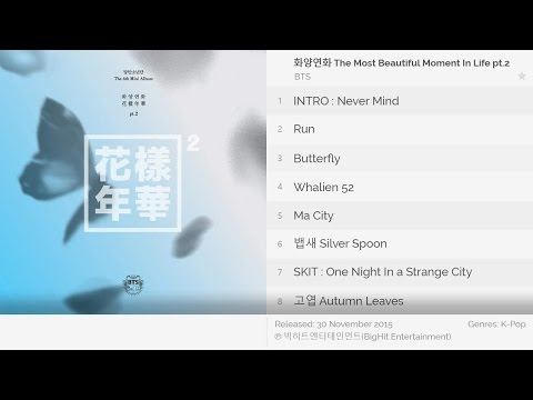 Bts The Most Beautiful Moment In Life Part 2 Songs }}- Info: Artist: 『BTS』 Released: 『30 November 2015』 Genres: 『K-Pop, Music, Pop, Hip-Hop/Rap』 Album: 『화양연화, Pt. 2 The Most Beautiful Moment In Life, Pt. 2』 ...